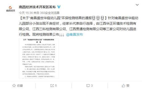 江西一幼儿园甲醛指标不合格致幼儿流鼻血 已责令停课整改