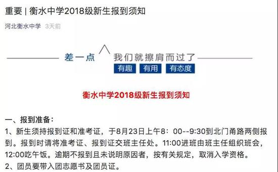 衡水中学新生报到须知:裙子要在膝盖以下 引热议