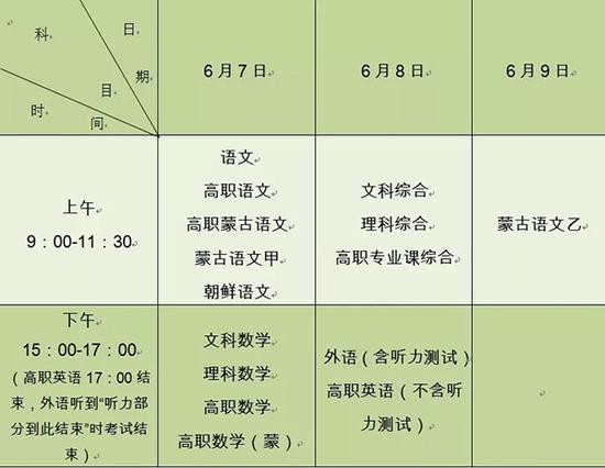 内蒙古2019年高考各科目时间安排 考试6月7日开始